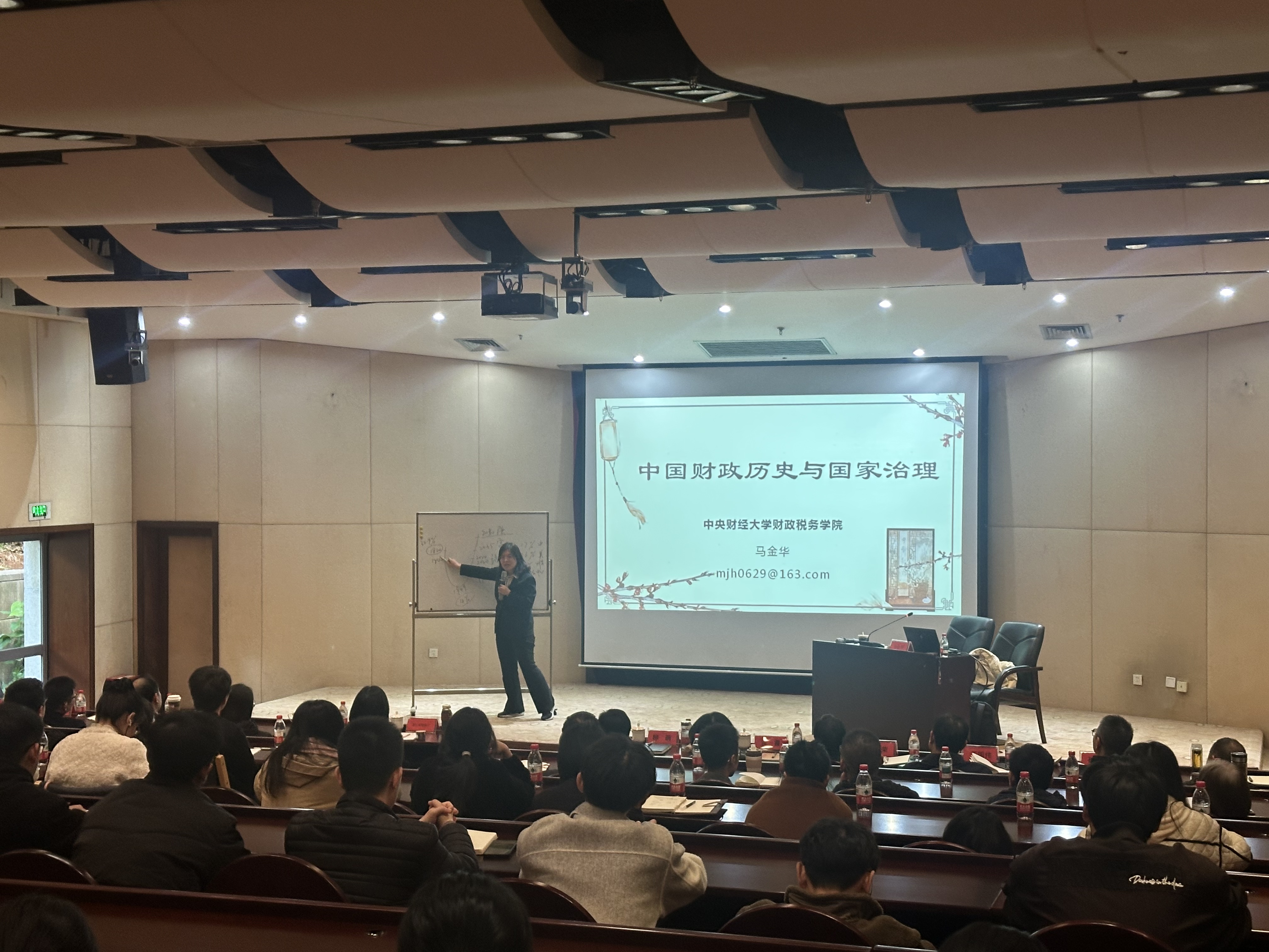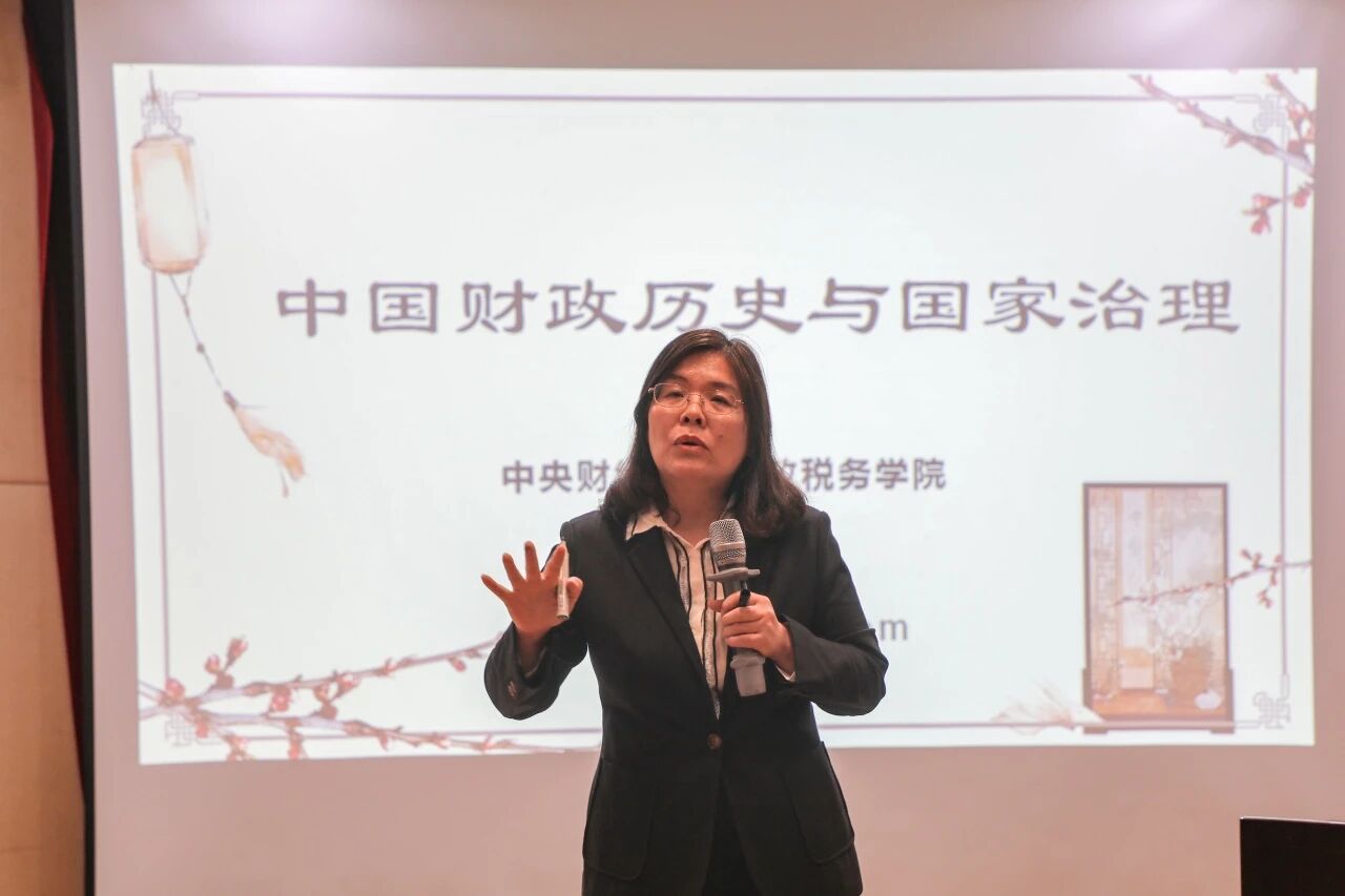 本次活动特邀中央财经大学财政税务学院教授、博士生导师马金华担任主讲嘉宾。讲座中,马金华以《中国财政历史与国家治理》为主题,结合自身深耕财税史领域的研究积淀,从多个历史维度梳理了中国财政制度的演变脉络,剖析了财政体系与国家治理之间的深层关联。她通过丰富的史料案例,将古代财税智慧与现代治理实践相结合,为在场教职工带来了一场兼具理论深度与实践价值的学术分享。